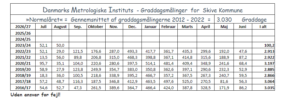 Graddage er udtryk for periodens behov for rumopvarmning. Graddagsopgørelsen omfatter alle dage med en udendørs døgnmiddeltemperatur ≤ 17 °C.
